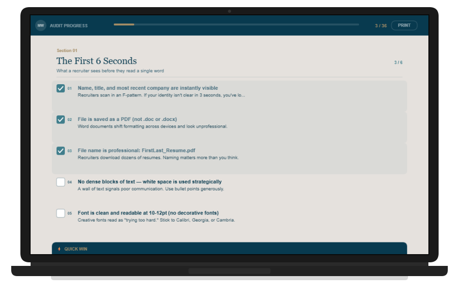 The 36 point checklist recruiters wish you knew about. Stop getting ignored and start getting callbacks with the exact framework recruiters use inside hiring rooms.